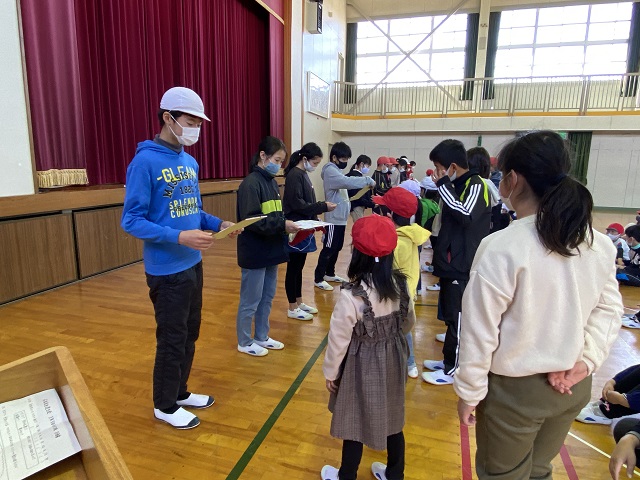 6年生にプレゼント(6年生へのメッセージ)を渡した後、へびじゃんけんとこいしろ〇✖クイズを楽しみました。