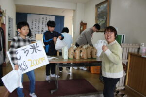 野菜と米の販売、遊休品バザーをしていただいていました。