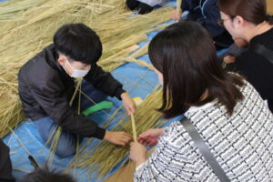 子どもたちは、4年生がしめ縄教室